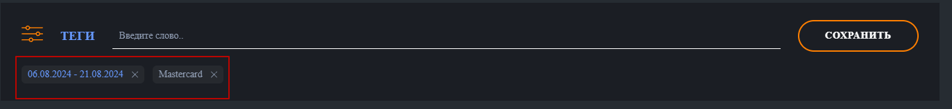 Для поиска по тегам вводится название тега и кнопка «Сохранить»